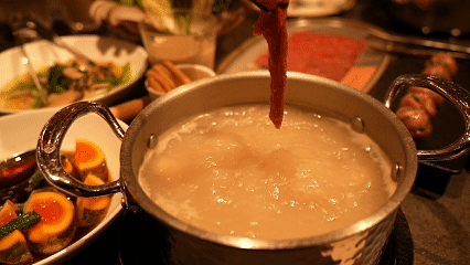 该门店主打“山羊火锅”,选用二狼山白绒山羊肉的各个部位作为主打招牌涮品,汤底主打现熬羊骨汤。在与店员的聊天中,笔者了解到,门店所标注的二狼山产地正位于贾国龙的老家内蒙古巴彦淖尔市。店员说,贾总在这家店常说:“在北京想吃到这么好的羊肉,我也只能来腾格里”。